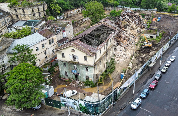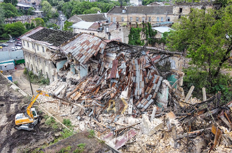 Будівельники демонтували практично половину величезного триповерхового будинку, який пережив бомбардування одеського порту у Другій світовій війні.