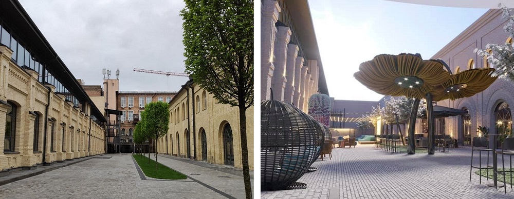 Тераса буде розташована між першим та другим корпусами заводу. Власник мережі коворкінгів Ілля Кенігштейн розповів, як буде виглядати простір.