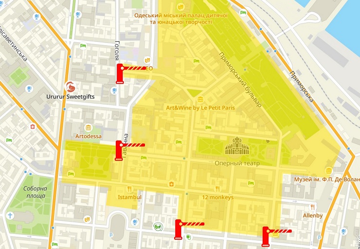 В Одесі вулиці історичного центру міста перетворять на пішохідну зону. Такий режим діятиме у вихідні та свята, починаючи з 19 години четвертого червня по опівночі шостого червня, повідомляє пресслужба Одеської міськради.