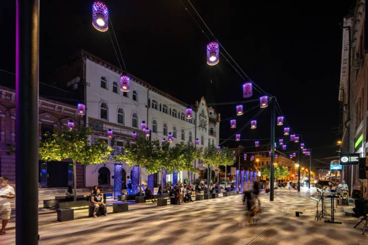 Реконструкція вулиці Короленка – це перший крок у створенні нового пішохідного каркаса у центрі Дніпра. Проєкт оновленого простору розробила команда на чолі з головним архітектором міста Дмитром Воликом, а за світловий дизайн відповідала компанія Expolight.