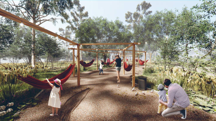 У проєкті передбачені дитячі та спортивні майданчики, арт-зони із вуличними скульптурами, скейт-парк, скеледром, місця для риболовлі, зона з гамаками поблизу водойми, а також єдиний в місті парк для вигулу собак.