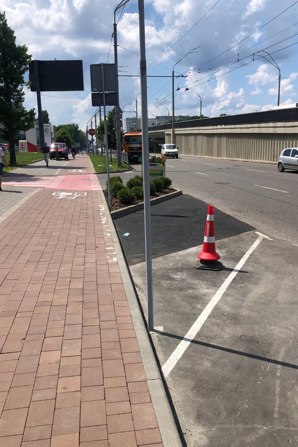 Під час цьогорічних великодніх свят будівельники розібрали дорожнє огородження та бордюр, частину двосторонньої велодоріжки, смугу газону та почали влаштовувати паркувальну кишеню.