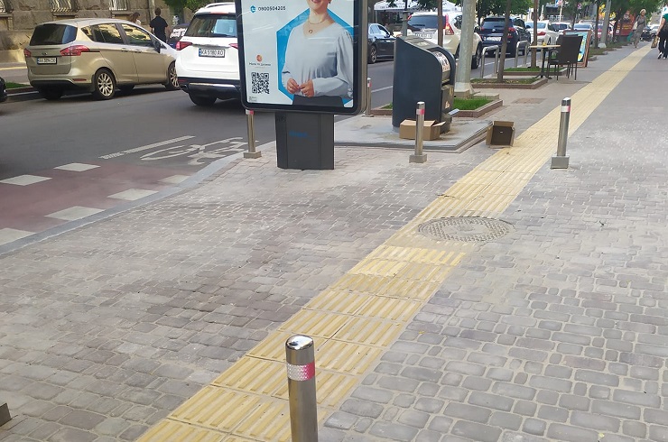 «Київавтодор» у травні намалював на тротуарах на Пушкінській величезні знаки, щоб запобігти стихійному паркуванню. У соцмережах розкритикували цей крок.