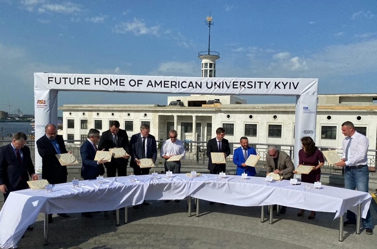 У Києві в будівлі річкового вокзалу на Поштовій площі з’явиться Американський університет. Навчальний заклад вищої освіти відкриють у партнерстві з державним Університетом штату Аризона (ASU), повідомили у посольстві США в Україні.