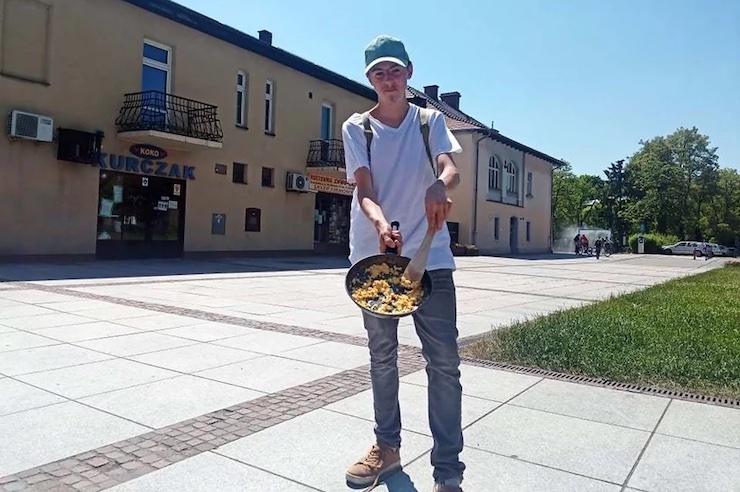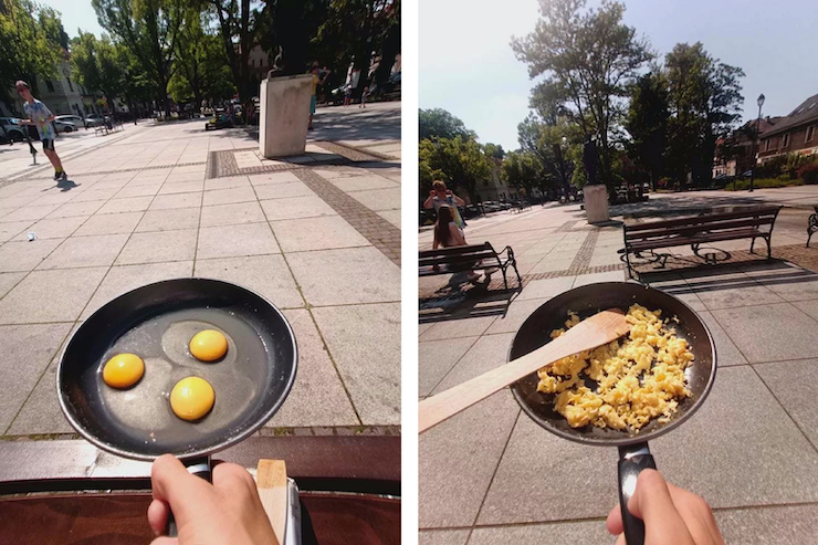 Поляк привернув увагу до міського клімату, засмаживши на площі яєчню без вогню (фото)