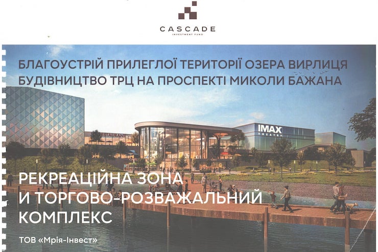 Шостого липня представники компанії «Мрія-Інвест», яка планує забудувати частину берега озера Вирлиця, намагалися презентувати проєкт забудови у приміщенні Дарницької адміністрації. Забудовник планує будівництво торговельно-розважального центру з паркінгом і благоустрій території.