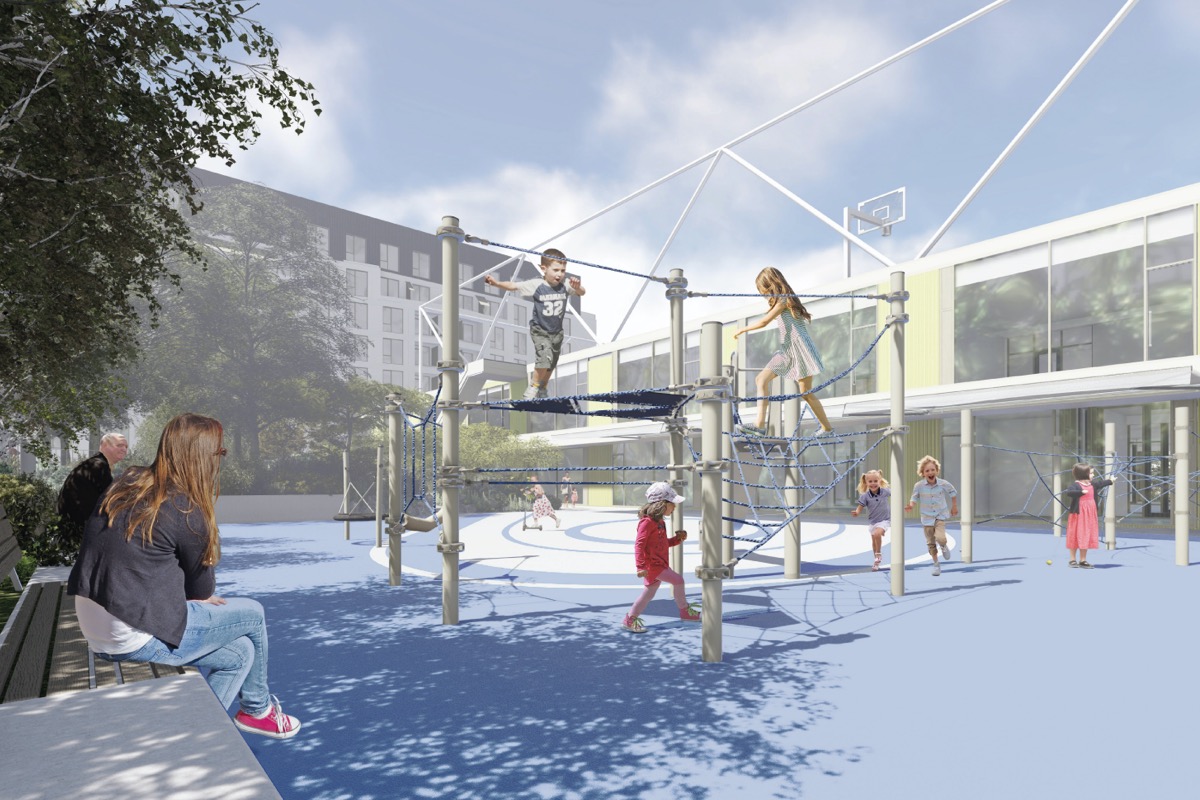 Найчастіше школа — це безпосередньо навчальний корпус та інфраструктура навколо: спортивні майданчики, лавочки, зелена зона. Усе це створює ще один простір для жителів комплексу, де можна спілкуватися.