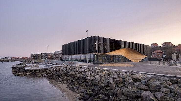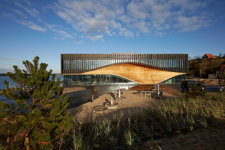 У данському Лемвігу збудували міжнародний кліматичний центр Klimatorium. У його дерев’яному фасаді є ніша, що слугує лавою, повідомляє Dezeen.