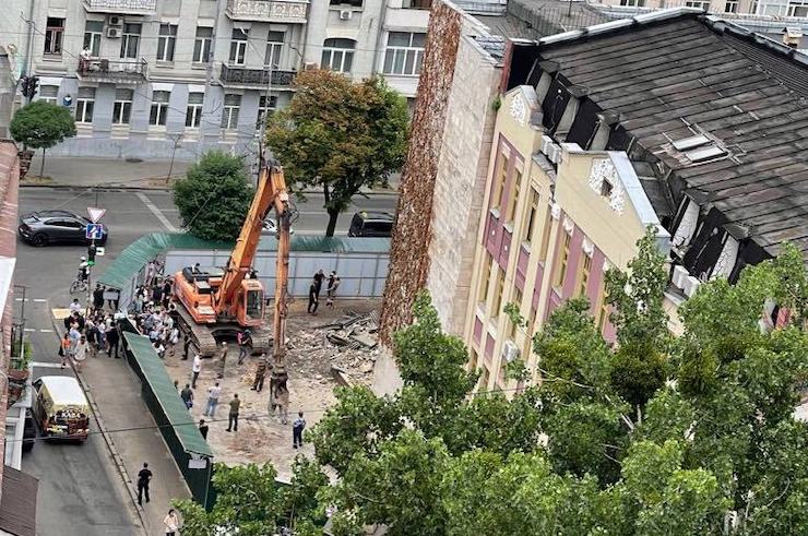 Наразі роботи зупинено, але вже знесено нижню частину атріуму, повідомляють з місця подій.