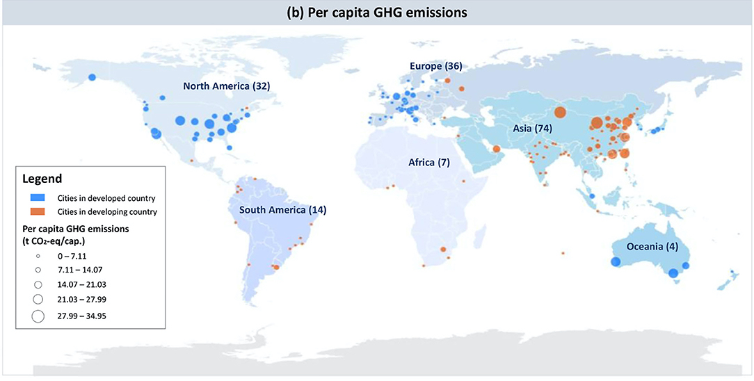 Водночас якщо рахувати обсяги викидів на душу населення, то тут картина дещо інакша: міста у розвинених країнах виробляють загалом більше парникових газів, ніж у бідніших країнах.