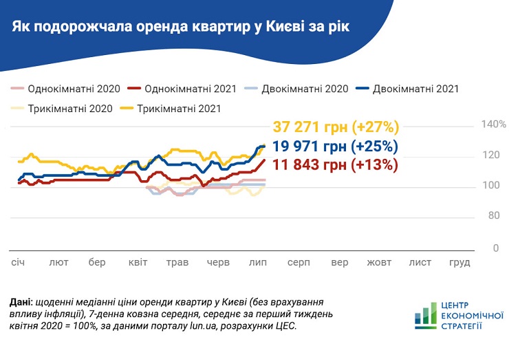 Третього липня 2020 року ціни зросли в середньому на 21%, найбільше подорожчали трикімнатні – на 27%. Минулого року на ціноутворення вплинули епідемія коронавірусу, зокрема, локдауни.