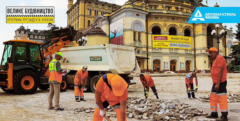 На фейсбук-сторінці програми «Велике будівництво» пояснюють: це відновлення Театральної площі разом із фасадом опери, яке є благодійним проєктом компанії «Автомагістраль-Південь» – подарунком до Дня Незалежності.