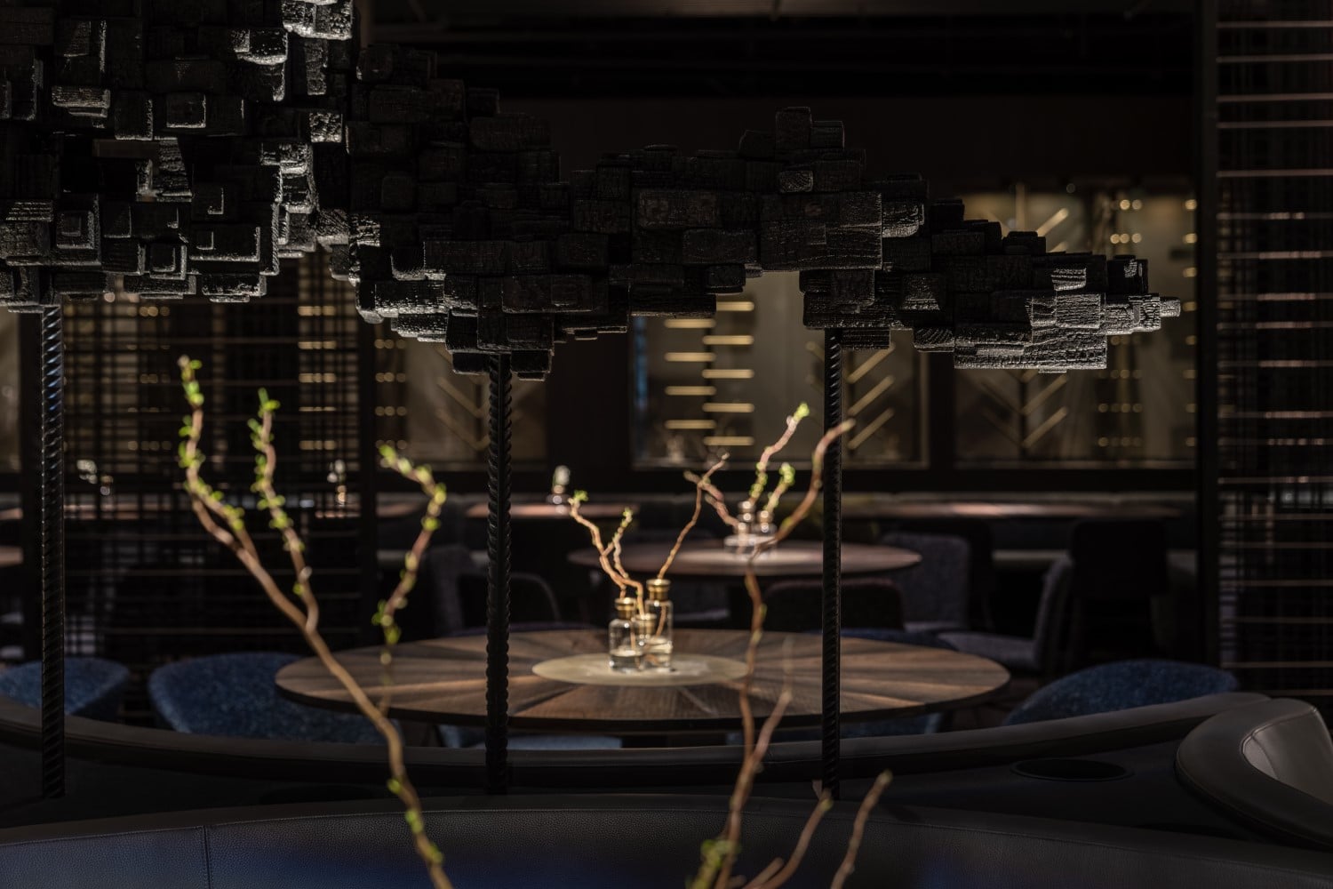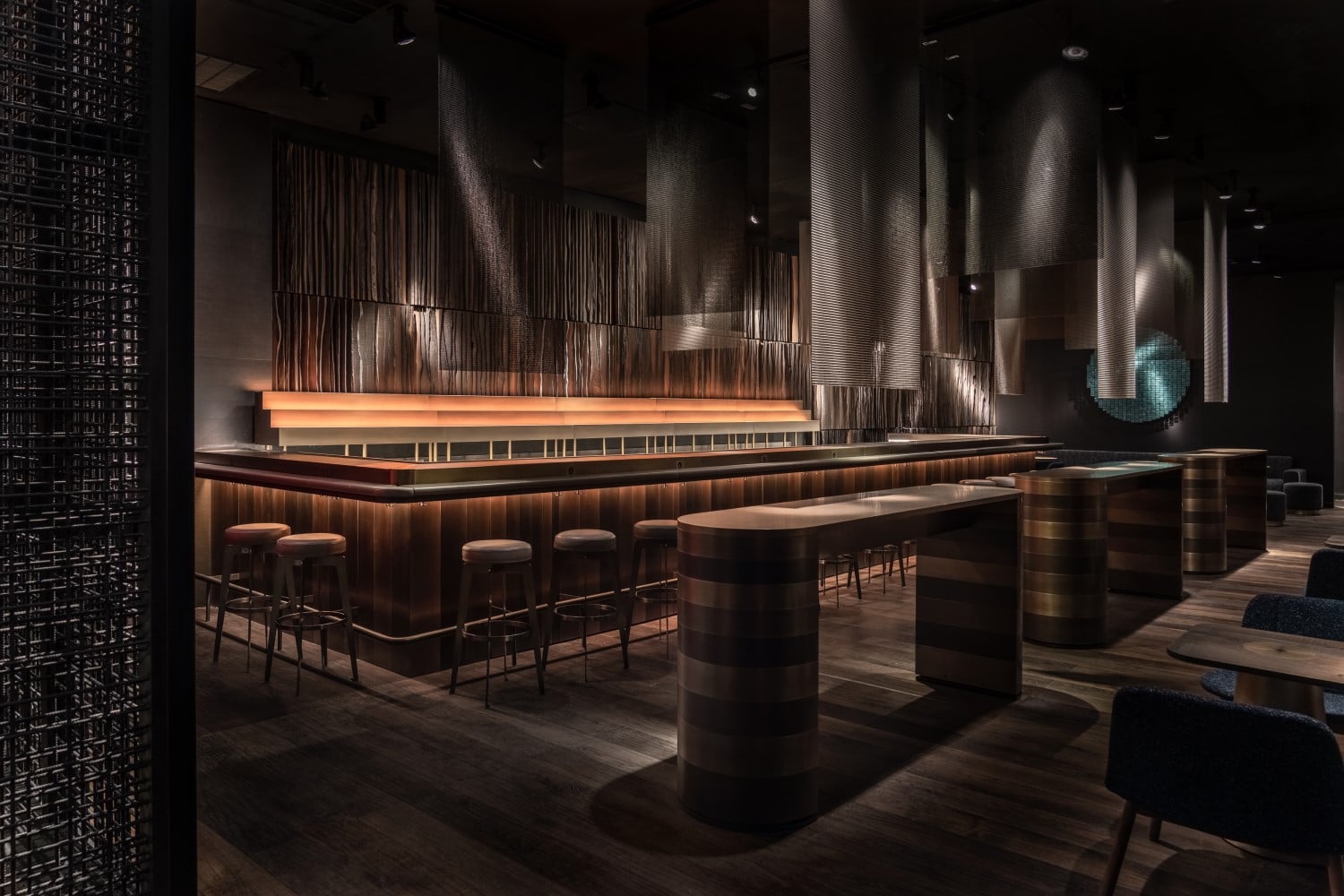 Загалом чимало елементів для нью-йоркського ресторану виготовили українські майстерні. Так, Postformula Craft створила задню стіну суші-бару з окисленої міді з розтрісканою текстурою бірюзового кольору, що символізує океан. А також кругле металеве панно з окремих окислених металевих пластинок на стіні лаунж зони.