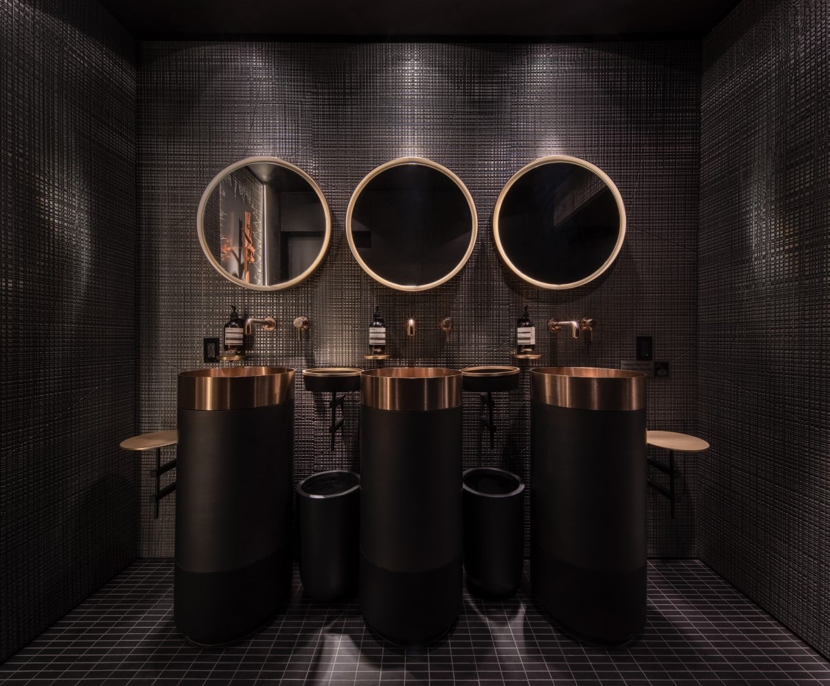 Дизайнери залишили відкритими елементи конструктиву будівлі, зокрема чавунні колони, характерні для лофтів. Високі ширми, зроблені з арматури, також нагадують про будівельний та індустріальний бум у Нью-Йорку початку ХХ століття.