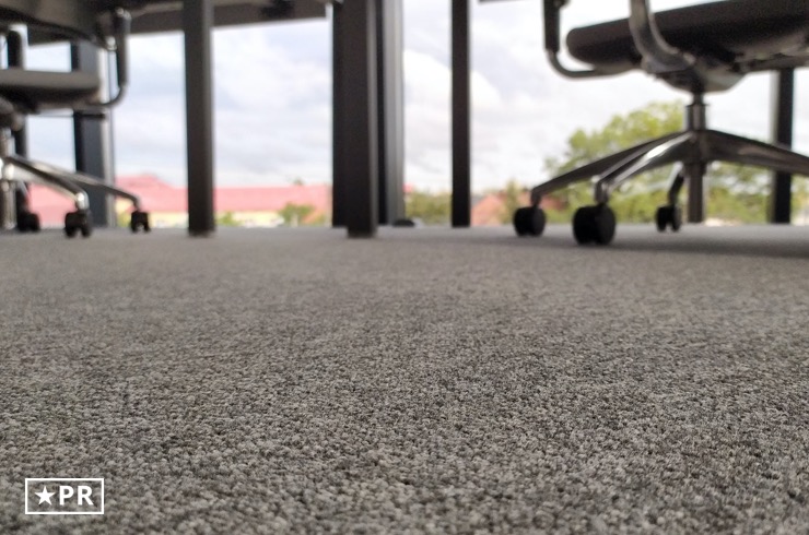 Килимове покриття (ковролін в рулоні або плитці) – відмінно підходить для підприємств, яким потрібна функціональність та теплота по стилю. Крім вбудованої теплоізоляції ковролін здатний забезпечити шумоізоляцію приміщення (тупіт, пересування меблів, падіння предметів). Хоча ковролін може не підходити для всіх типів приміщень вашого офісу, він відносно універсальний і легкий у догляді.