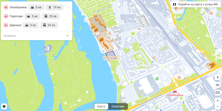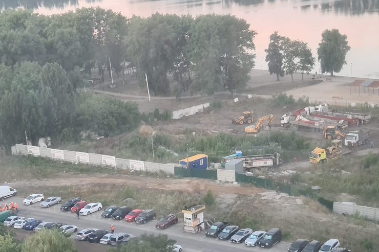На вулиці Микільсько-Слобідська, 7/9 поновилося будівництво багатоповерхового житлового комплексу. Місцеві мешканці повідомляють, що в ніч проти четвертого серпня на ділянку біля Дніпра заїхала будівельна техніка.