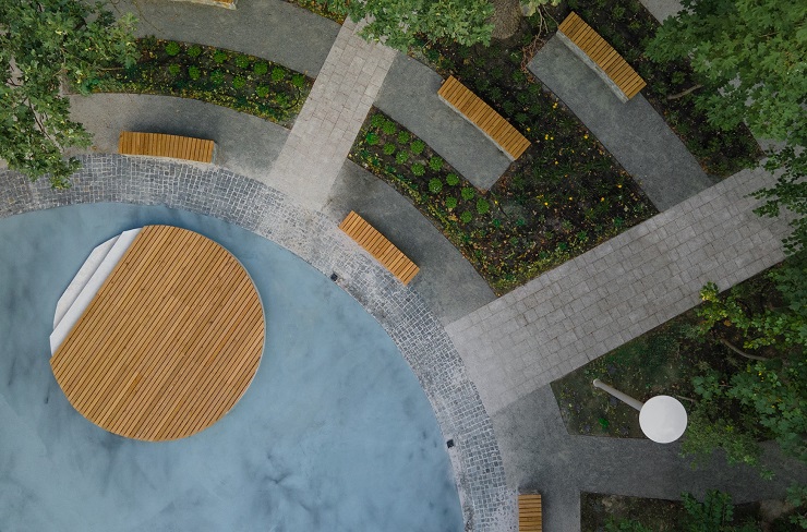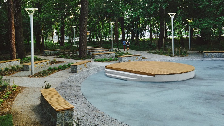 «Територія довгі роки була занедбаною і небезпечною. Ідея створення скверу полягала у збереженні природнього середовища зеленої зони з існуючими деревами та надання території творчого контексту», – розповідають архітектори.
