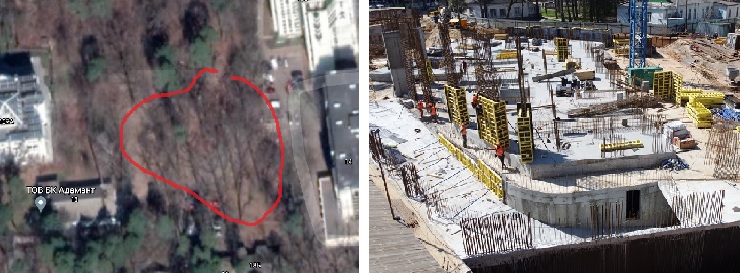 Проте місцеві жителі повідомляють, що перед початком будівнитцва забудовник зрубав на місці майбутніх будівель всі дорослі дерева, у тому числі 100-річні та 120-річні дуби. Всього за актом обстеження видаленню підлягало 101 дерево, залишитися повинно було 253 дерева.