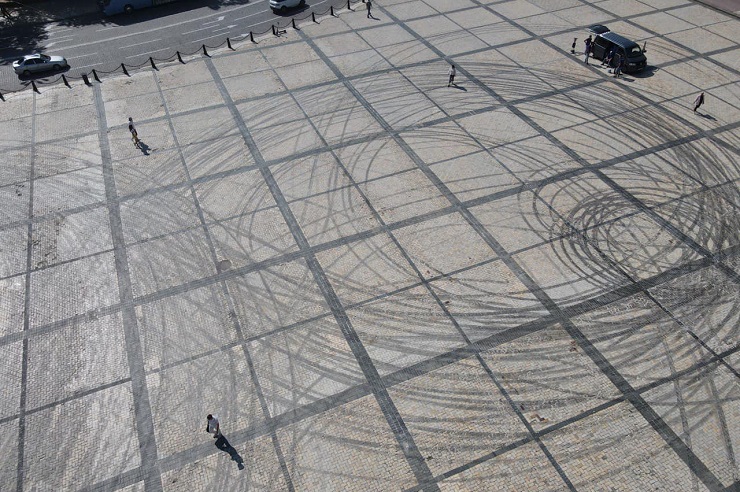 На пішохідній Софійській площі влаштували дрифт на авто для зйомок реклами