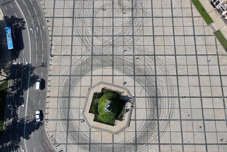 В історичному центрі Києва на Софійській площі нібито знімали рекламу – два автомобілі дрифтували на великій швидкості посеред пішохідної зони. У КМДА запевняють, що не давали дозволу. Відео опублікував перший заступник директора Національного заповідника «Софія Київська» Вадим Кириленко.