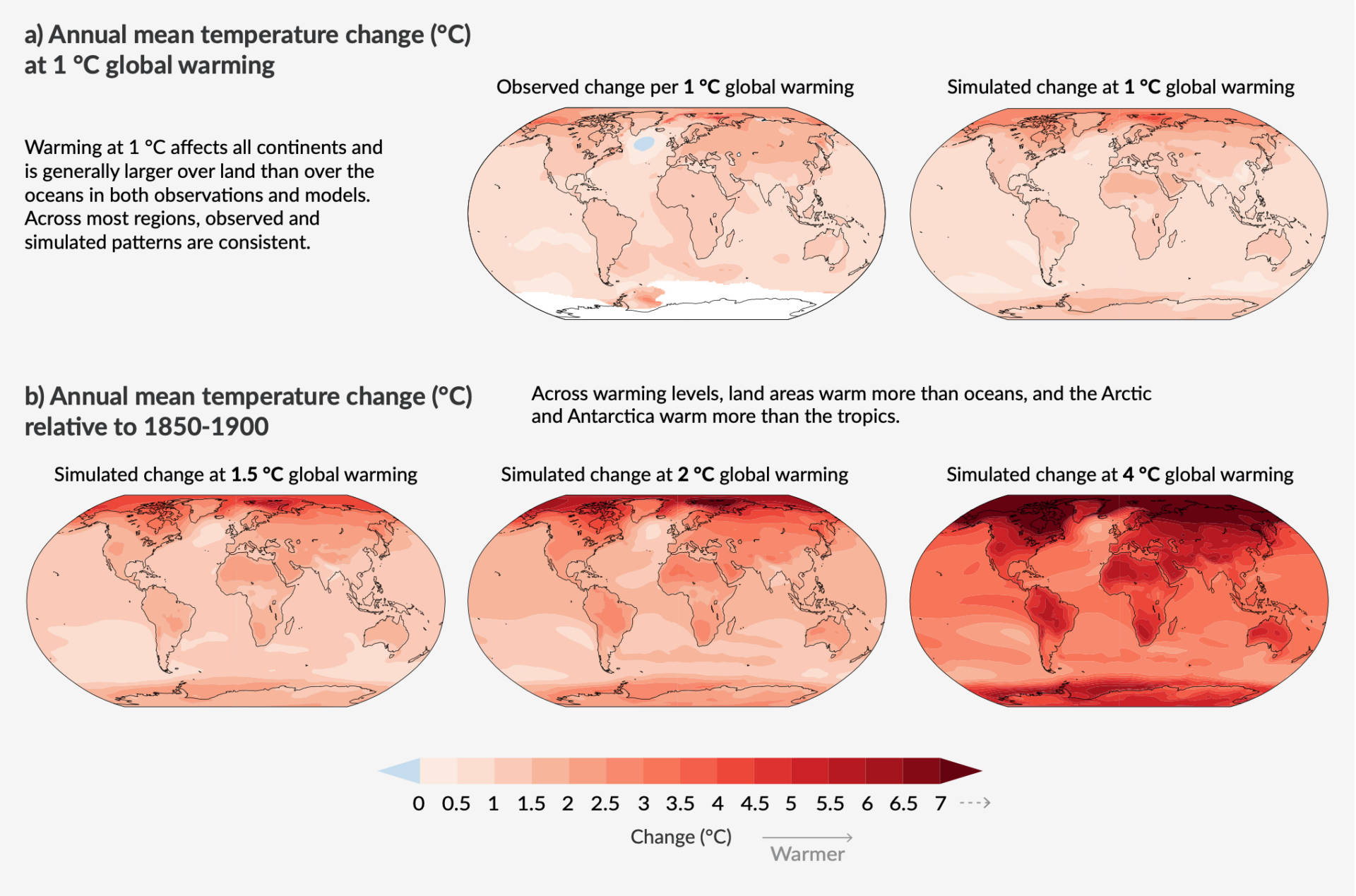 Регіональні зміни клімату за різних сценаріїв підвищення глобальної температури. Інфографіка: IPCC