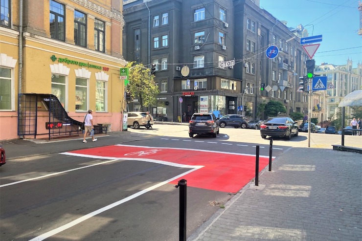 У Києві почали робити лівоповоротні зони для велосипедів. Як це працює? (фото)