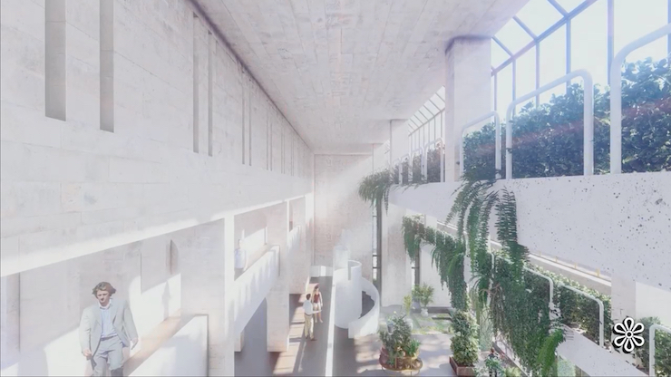 Архітекторка студії BURØ Ярослава Дубова створила відеовізуалізацію оригінальних інтер’єрів модерністської будівлі «Квіти України» на Січових Стрільців.