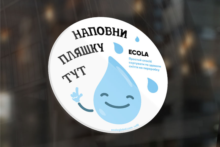 Стартап Ecola запустив у Києві проєкт «Наповни пляшку тут / Refill», який заохочує людей використовувати багаторазові пляшки.
