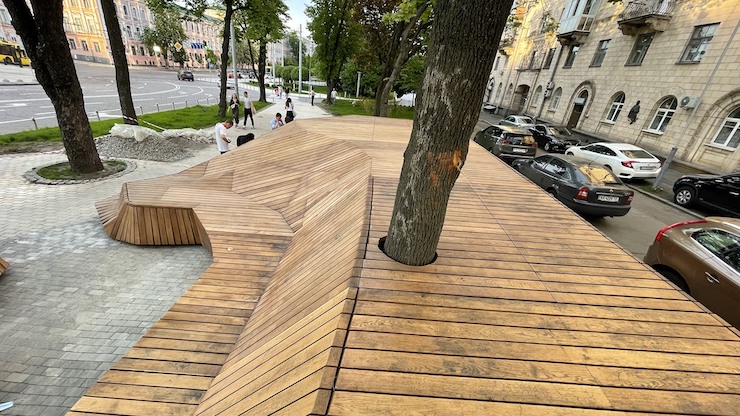 Отвори для дерев виглядають значно меншими, ніж на візуалізаціях. Фото: Александр Барабошко, травень 2021