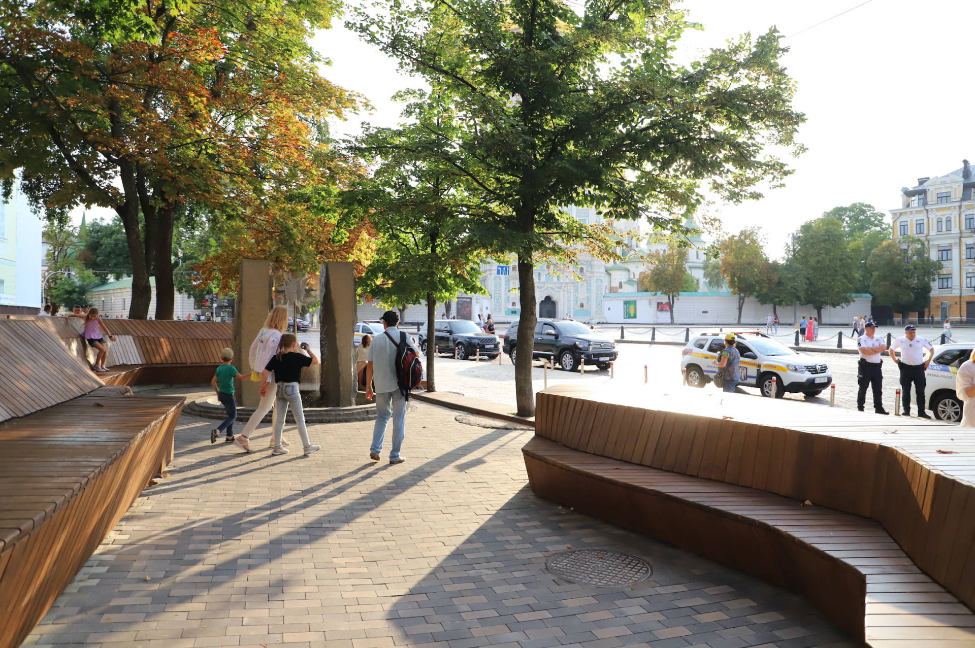 Навпроти Софійського собору в Києві відкрили Литовський сквер після капітального ремонту. Фотографії опублікувала пресслужба КМДА.