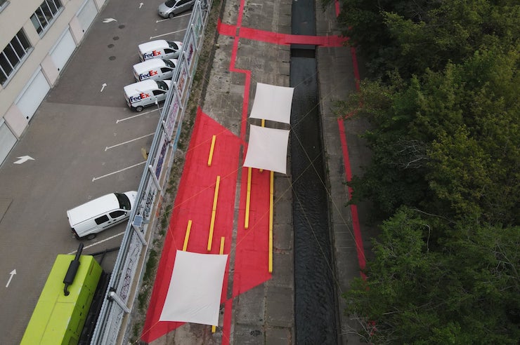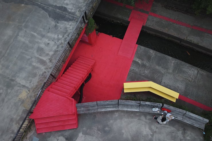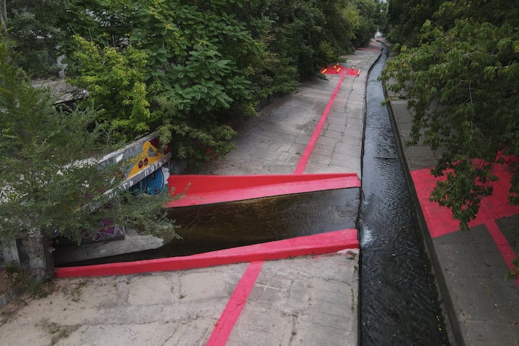 Команда ГО «Міські реформи» прибрала територію біля Либеді та розфарбувала бетонне покриття у контрастні кольори. Зміни простору покликані привернути увагу до локації та показати, що тут можна з комфортом проводити час.