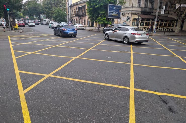 Розмітка нагадує водіям про пункт ПДР, який забороняє заїжджати на перехрестя, якщо немає можливості його проїхати.
