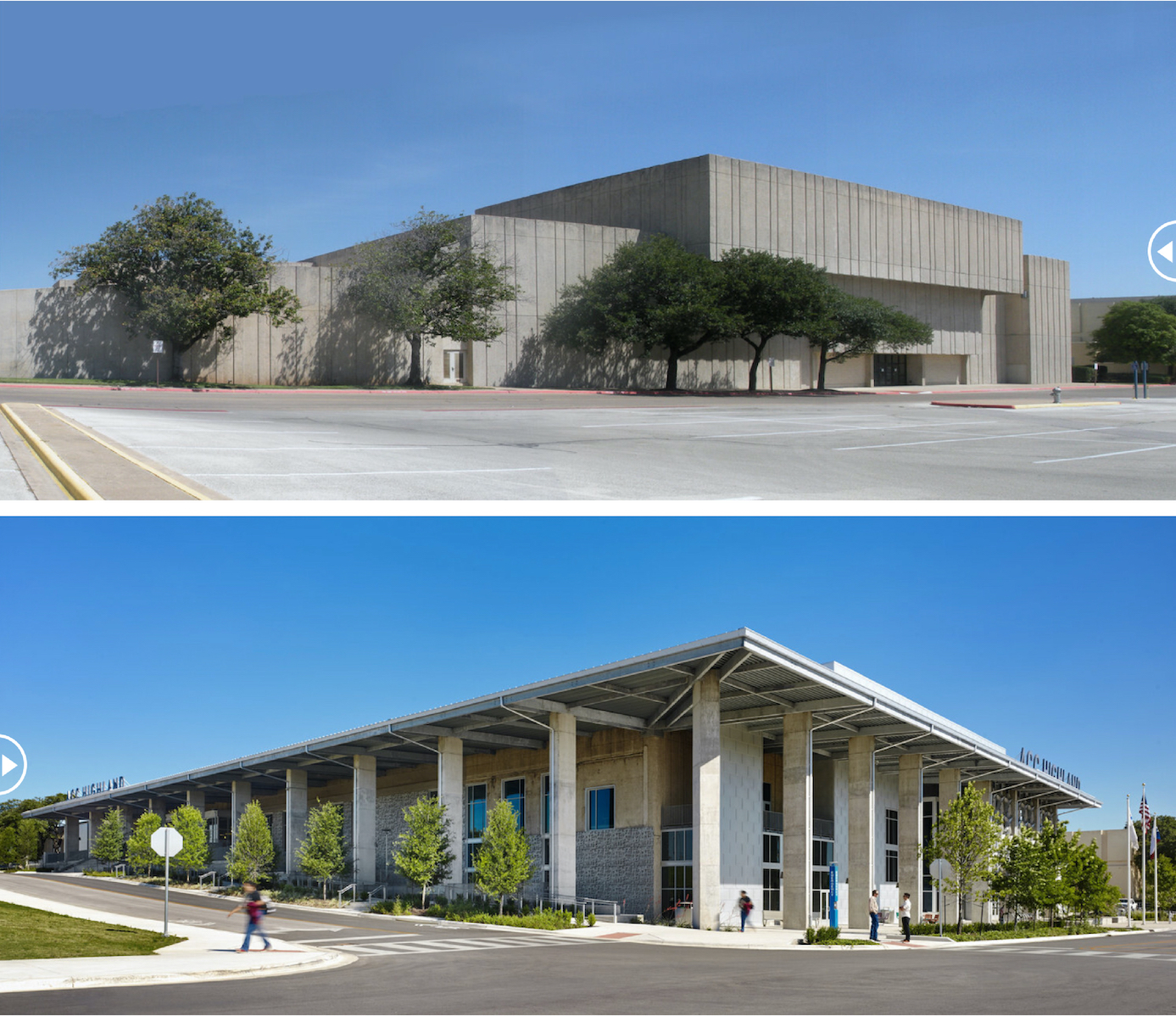 Коледж. Окружний коледж округу Остін у штаті Техас протягом понад десяти років перетворював колишній мол на мультифункціональний студентський кампус. Цей торговельний центр існував з 1971 року, а у 2014-му відкрився вже як академічний простір. Проєкт адаптації, який частково фінансувався муніципалітетом Остіна, розробило бюро Barnes Gromatzky Kosarek Architects.