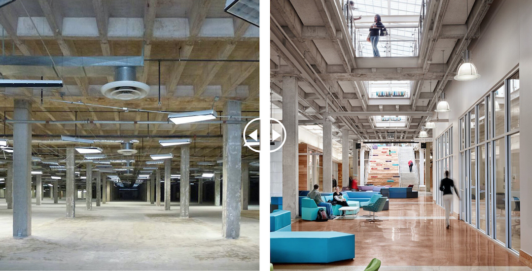 Автори проєкту додали вікон та створили скляний дах. Величезний паркінг перетворили на громадський простір. У кампусі розташували аудиторії, простори для відпочинку й навчання, дослідницькі лабораторії, їдальню та кафе, кімнати для занять танцями, театром і кулінарією тощо.