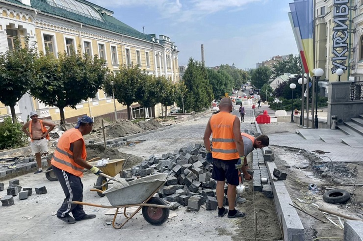 У межах реконструкції облаштовують гранітну бруківку на частині вулиці Андріївської між вулицями Боричів Тік і Сагайдачного. Площа ділянки – близько 2000 квадратних метрів. Раніше на цій ділянці було асфальтове покриття. На ділянці також проводять оновлення тротуарів. Загальна площа пішохідних доріжок – понад 6 тисяч квадратних метрів. Їх влаштовують із фігурних елементів мощення.