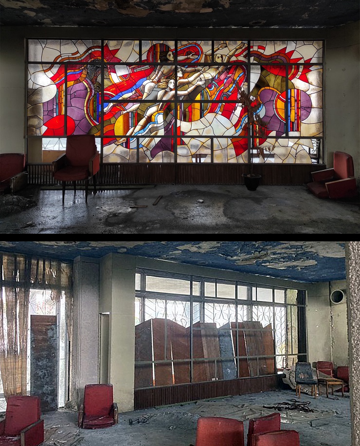 «Вітражів у будинку культури “Електронмаш” вже не існує. А на подвір’ї там можна знайти достатньо шматочків кольорового скла, щоб не залишилося ніякої надії, що їх кудись забрали», – написала краєзнавиця.
