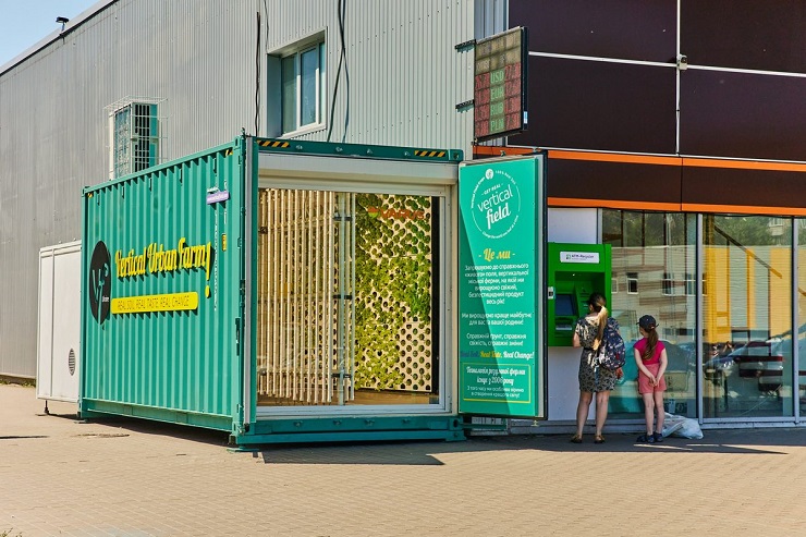 Vertical Field Ukraine створює «зелені стіни» для вирощування рослин в будь-якому місці. Врожай обробляють за допомогою автоматизованої системи. Продукти, вирощені на такій фермі, не містять пестицидів, виробляють менше відходів, ніж традиційне сільське господарство, та використовують на 90% менше води, бо вирощуються в точних кількостях у контрольованому середовищі з коротшими циклами, запевняють в Vertical Field.
