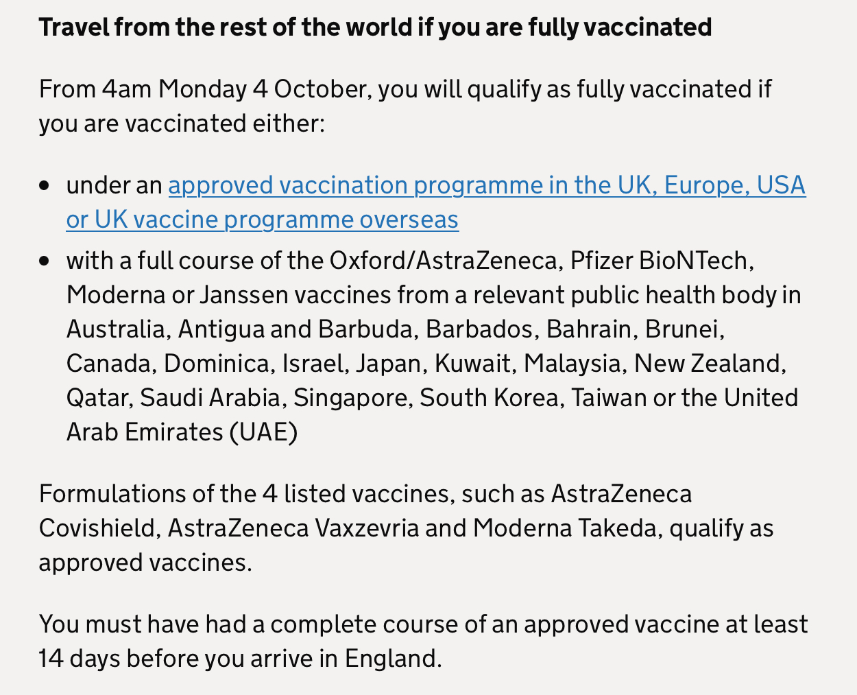З минулої п’ятниці, 17 вересня, Велика Британія дозволила в’їзд вакцинованим мандрівникам, але тільки тим, хто щепився у країнах з певного переліку, повідомляє The Guardian.