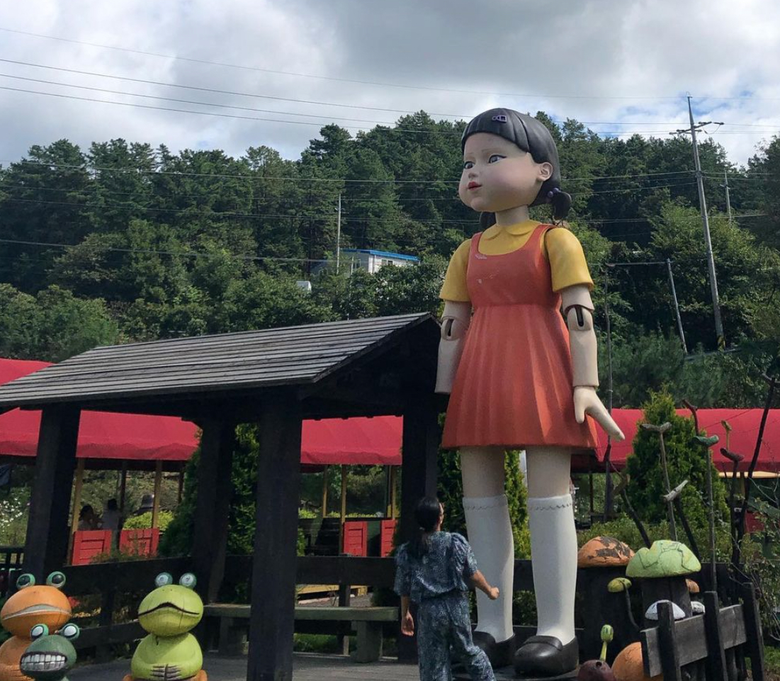 Охоронці в серіалі також мають примітну уніформу — червоні комбінезони та маски-шоломи. І так, запити на пошук червоних комбінезонів у гуглі зросли на 62%. Є також ті, хто шукає, де купити костюм зловісної ляльки, яка у першій грі змагання сканує очима гравців, що поворухнулися. До речі, це реальна лялька з одного з музеїв у Чінчхоні.
