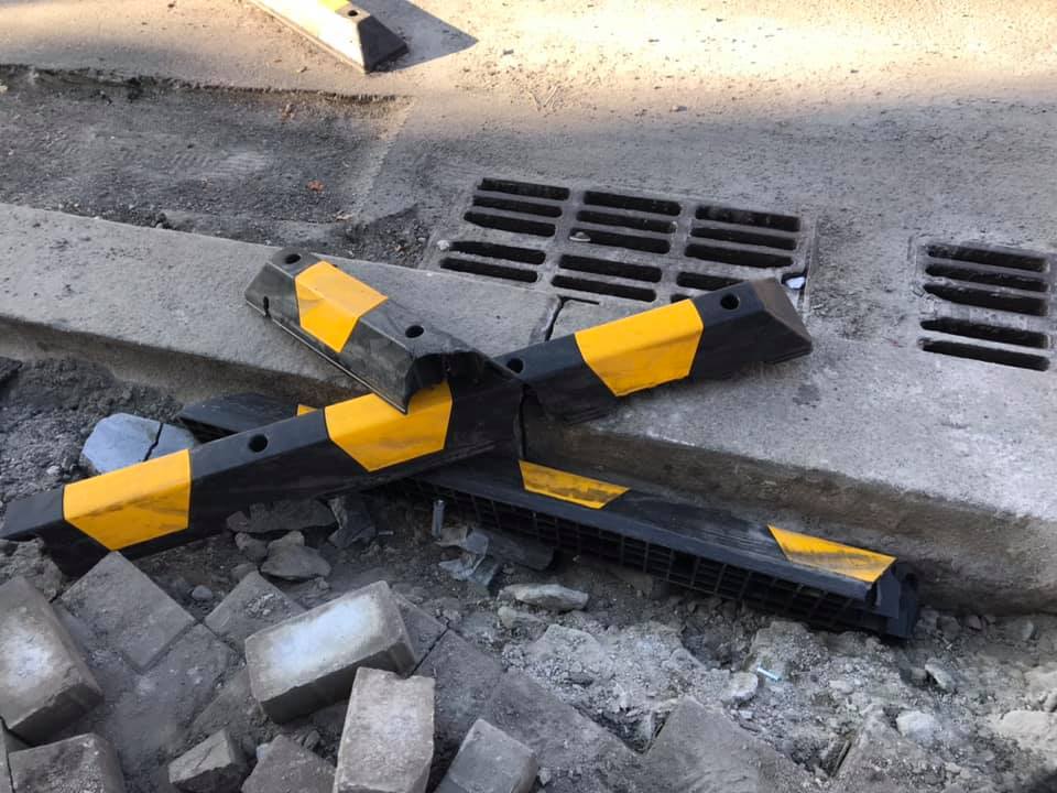 За кілька днів водії зламали делініатори, які не дають паркуватись на Басейній