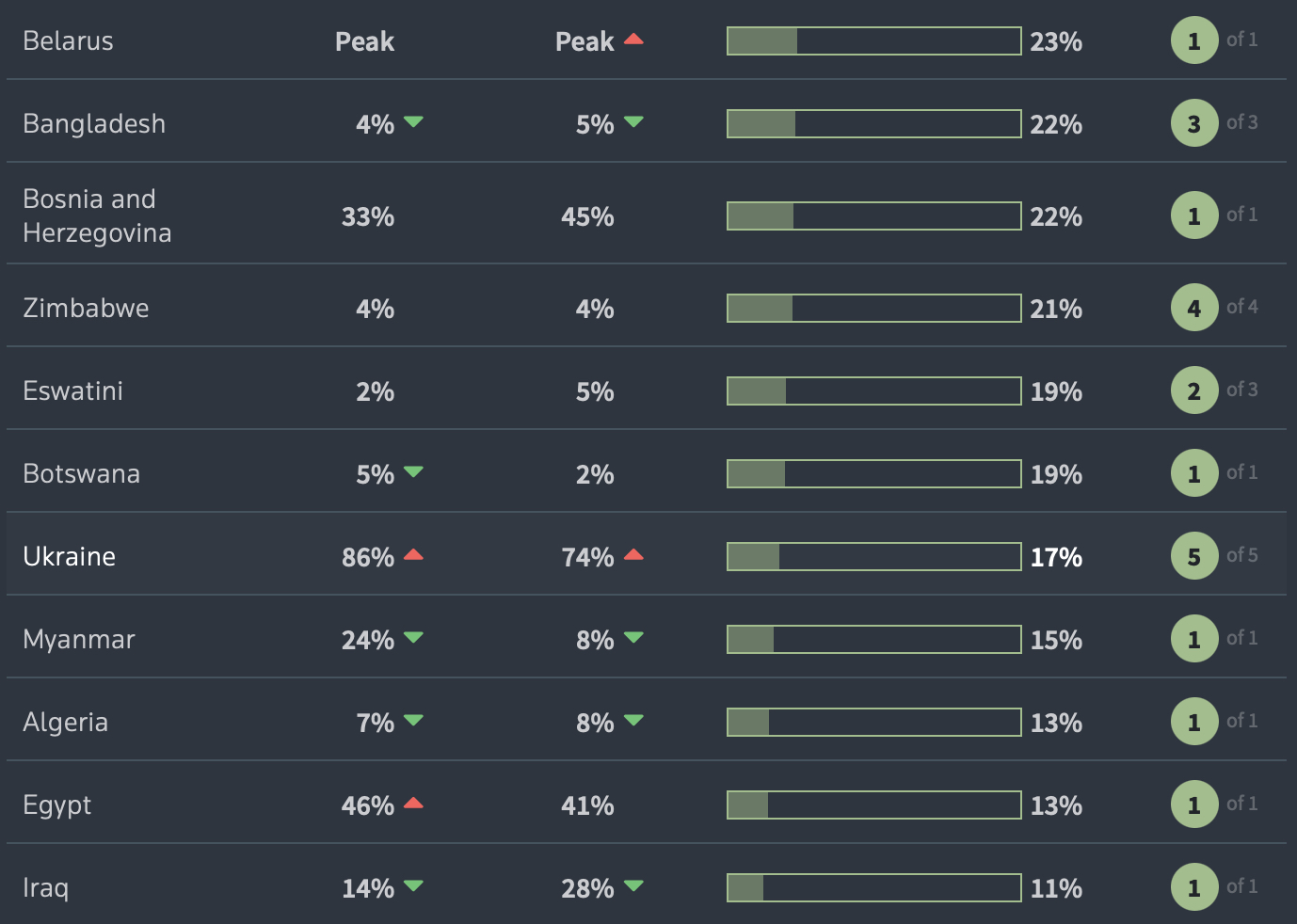 Україна у списку за рівнем вакцинації населення. Скриншот зі сторінки graphics.reuters.com