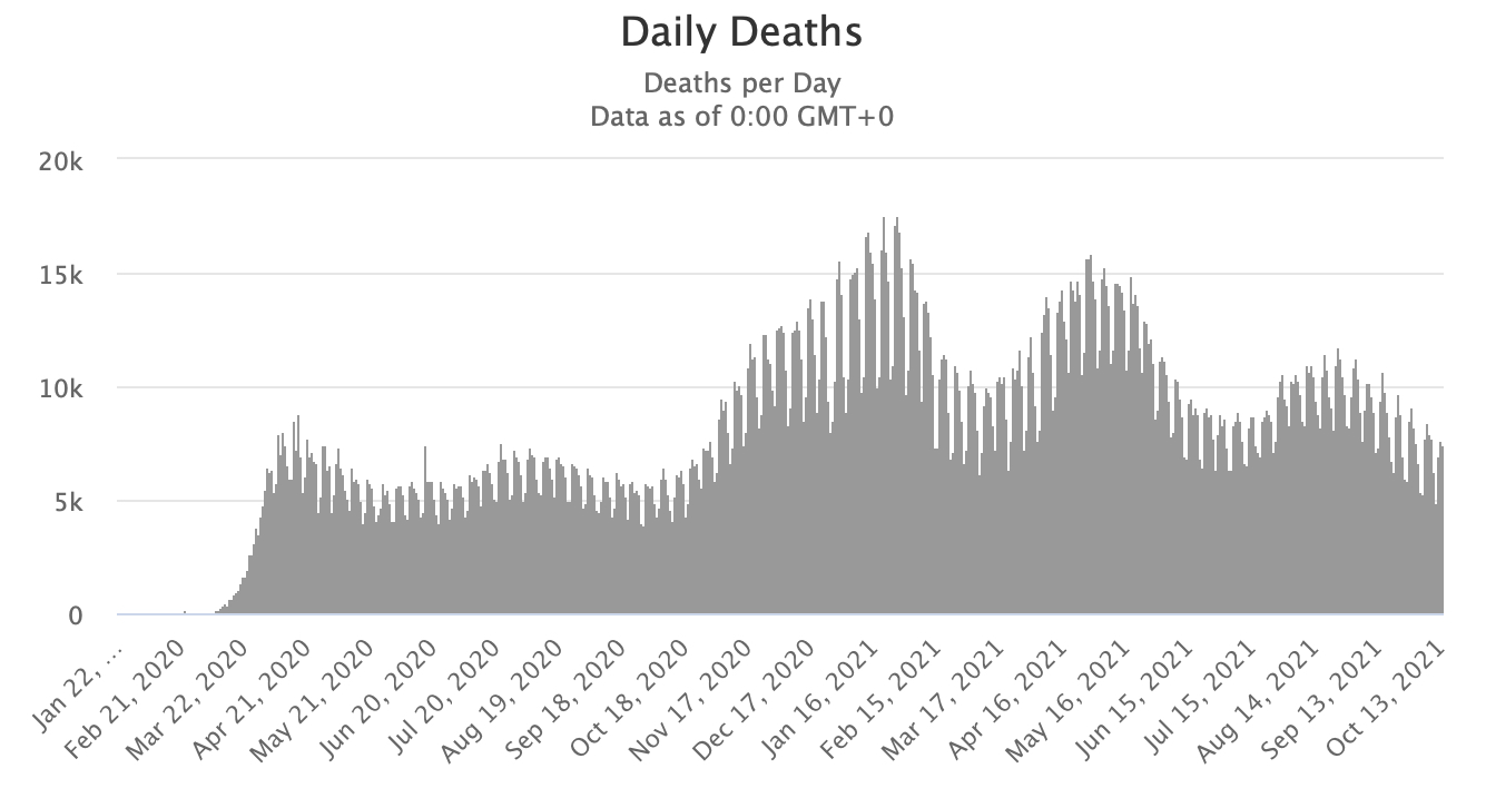 Офіційний рівень смертності від коронавірусу в світі зараз є найнижчим з початку року, заявив генеральний директор Всесвітньої організації охорони здоров’я Тедрос Гебреісус. «Справжня кількість, звичайно, більша», — додає він.