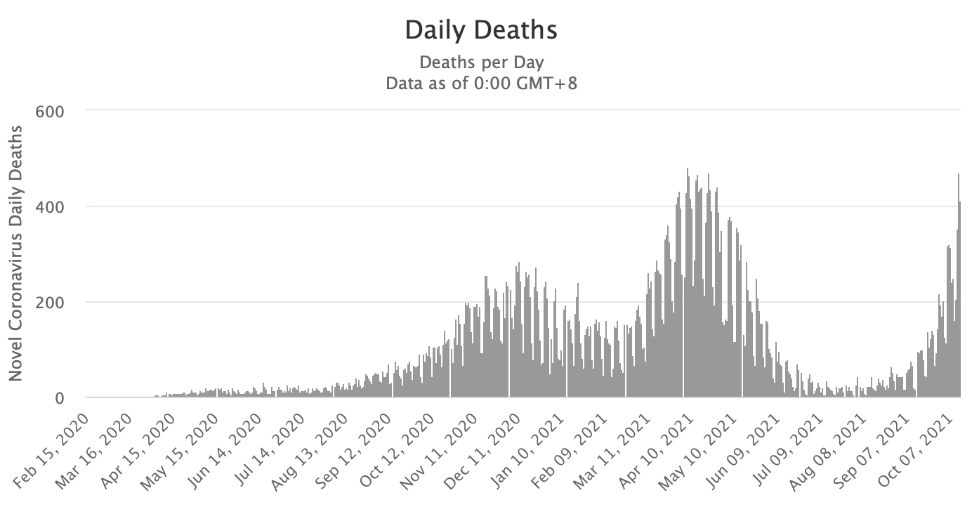 Серед країн, які увійшли в третю хвилю пандемії — Україна. 12-13 жовтня щодня фіксували понад 400 смертей від коронавірусу.
