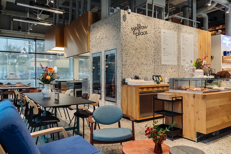 За архітектурне рішення відповідала швейцарська компанія Interstore-Schweitzer, що спеціалізується на проєктуванні та реалізації рітейлових локацій. Простір із зонами Yellow Place, Sabotage Wine і Mirali реалізували разом із архітектурним бюро «Форма», а виробничу зону пекарні проєктували разом із бюро A3.
