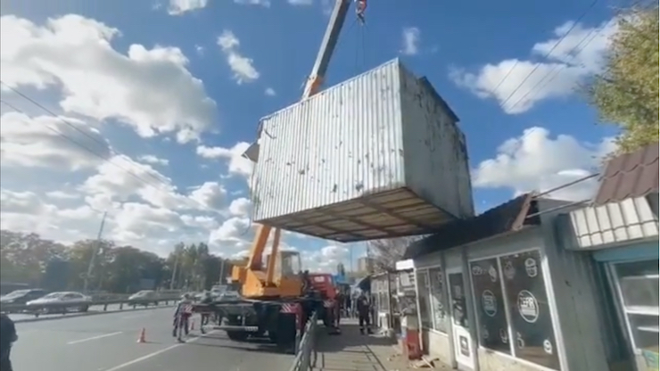 19 жовтня бригади «Київблагоустрою» почали демонтувати ряди МАФів на проспекті Глушкова біля станції метро «Виставковий центр». Перші кіоски вже відправили на штрафмайданчики.