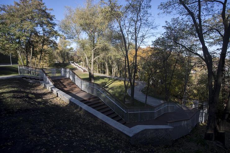 Зараз на нижній терасі добудували сходи до Воздвиженки, у тому же стилі, що й сходи, зроблені три роки тому.