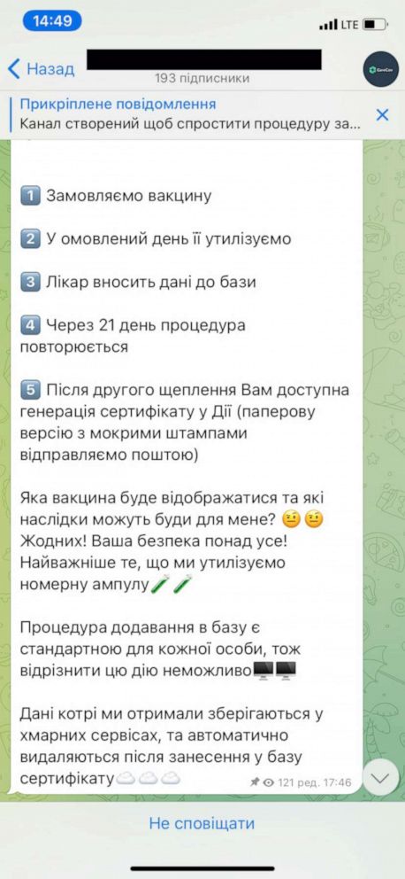 Водночас американське ABC у матеріалі про чорний ринок ковід-сертифікатів в Україні повідомляє про спосіб, який дозволяє генерувати дійсні сертифікати в «Дії» без вакцинації — для цього лікарю, який бере участь у незаконній схемі, достатньо просто вилити дозу вакцини.