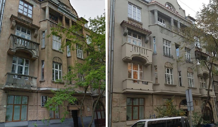 Реставрацію балконів та еркера виконано в межах міської програми, а решту фасаду реставрували співвласники своїм коштом.
