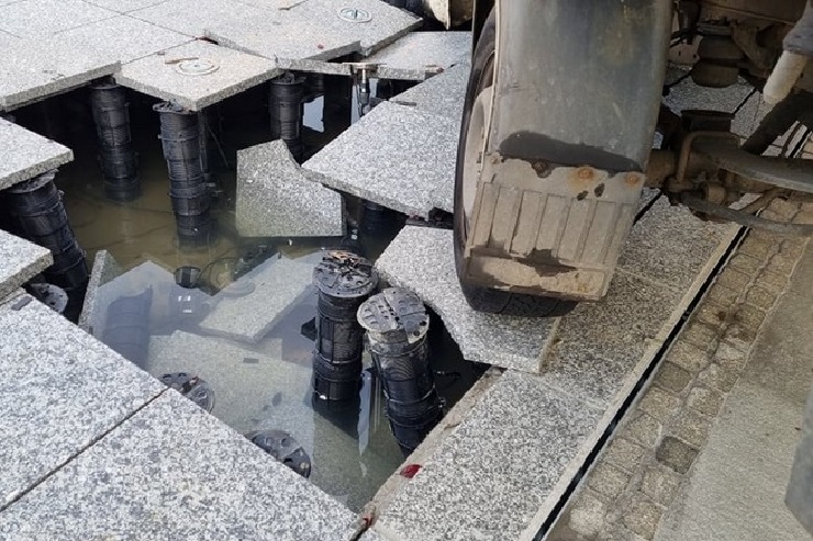 У Польщі вантажівка провалилась в сухий фонтан, який пропрацював місяць