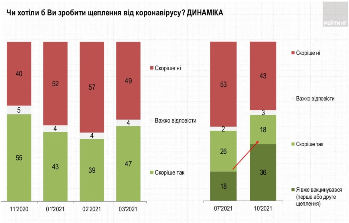 «Важливо розуміти, що опитування відбувалося лише серед дорослого населення України, тоді як офіційна статистика кількості вакцинованих виводиться серед усього населення. У порівнянні із липнем цього року, лояльність до вакцинації зросла», — коментують соціологи.